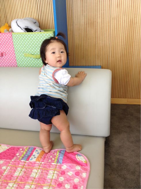 最近つかまり立ちもできるようになり、つかまったまま軽快にリズムをとるようになりました(`・ω・´)