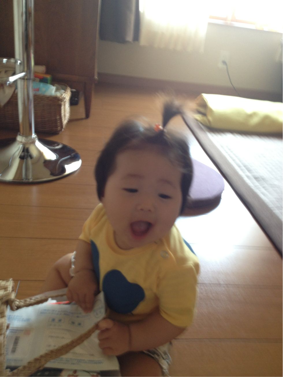 ハイハイはまだ出来ず、その場での回転を身につけました!