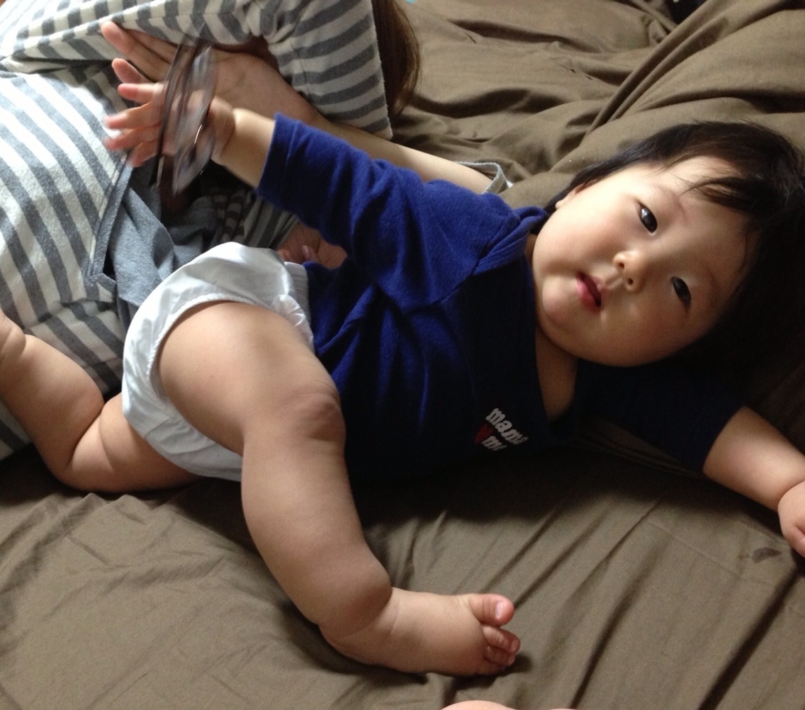 ハイハイはまだ出来ず、その場での回転を身につけました!