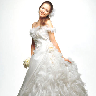 スカートやロングトレーンにフリルをたたえたドレスで、永遠に続く幸せをみんなで願いましょう!!